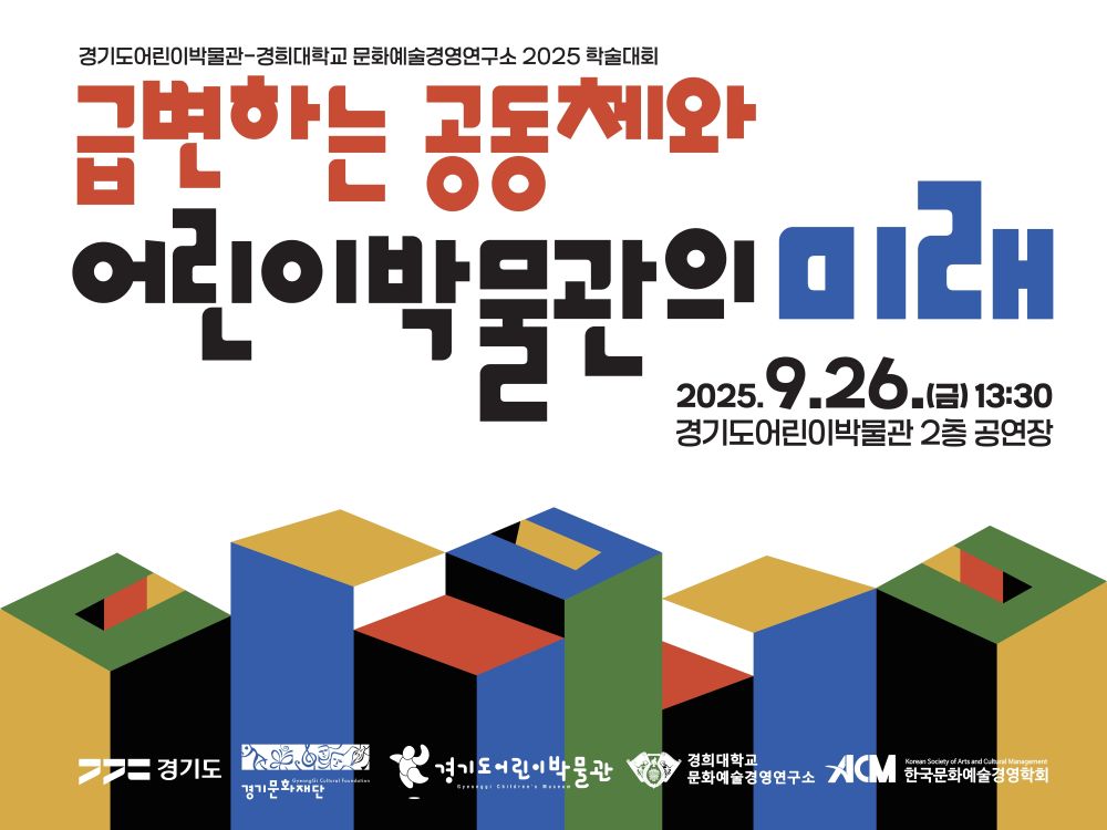 경기도어린이박물관은 2025년 9월 26일 ICOM 주제인 ‘급변하는 공동체와 박물관의 미래’에 맞춰 경희대학교 문화예술경영연구소와 함께 학술대회를 개최했습니다. 공동체의 변화 속에서 어린이박물관이 나야가야 할 미래와, 수동적 수혜자가 아닌 적극적 참여 주체이자 세계시민으로서의 어린이를 어떻게 바라 볼 것인가를 논의했습니다.