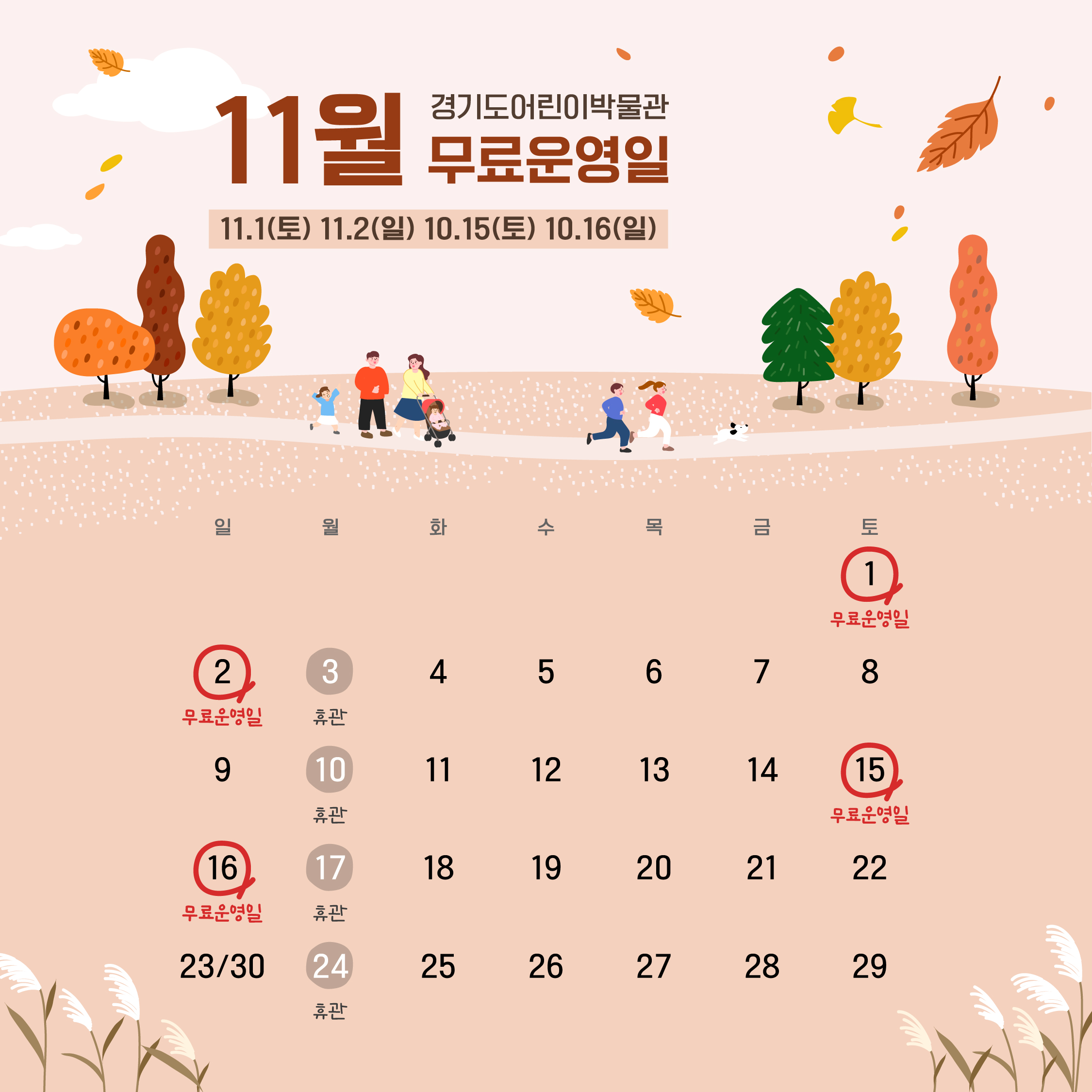 11.1.(토), 11.2.(일), 11.15(토), 11.16.(일)