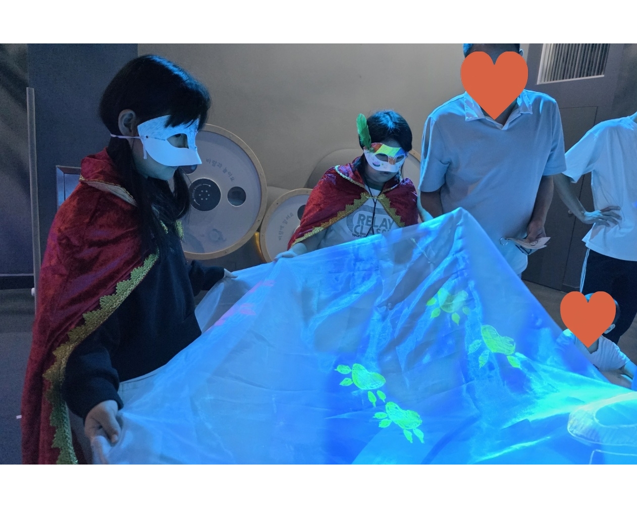 - 미션카드를 확인에 전시실에 있는 힌트를 찾아 가면을 쓴 보조강사 선생님에게 확인 후 스템프를 받고 다음 전시실로 이동해 주세요.
