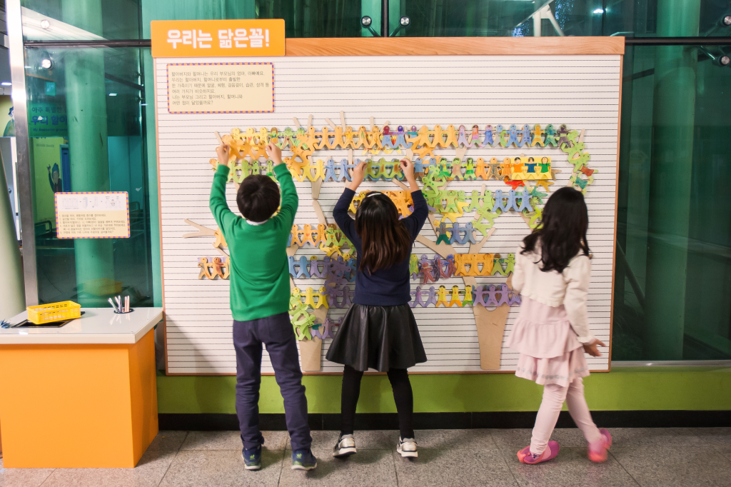 이번 전시에서 우리 할아버지, 할머니에 대해서 알아보며 우리의 특별한 친구이기도 하신 조부모의 가치를 경험할 수 있어요. 할아버지, 할머니는 포근한 미소로 우리를 위로해주시기도 하고, 지혜와 경험으로 축적된 무궁무진한 이야기 보따리로 우리를 설레게도 하고 아빠, 엄마의 어린 시절을 가장 잘 알고 있는, 바로 우리 가족의 뿌리이기도 해요. 우리도 점점 자라 부모님처럼 어른이 되고 언젠가는 할아버지, 할머니가 되지요. 하지만 할아버지, 할머니 마음속엔 언제나 우리와 같은 어린아이가 있어서 재미난 친구가 될 수도 있답니다.